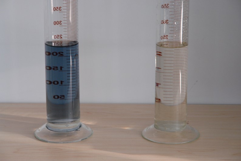 Если в чистую воду добавить небольшое количество чернил, после применения прибора чернила побледнеют